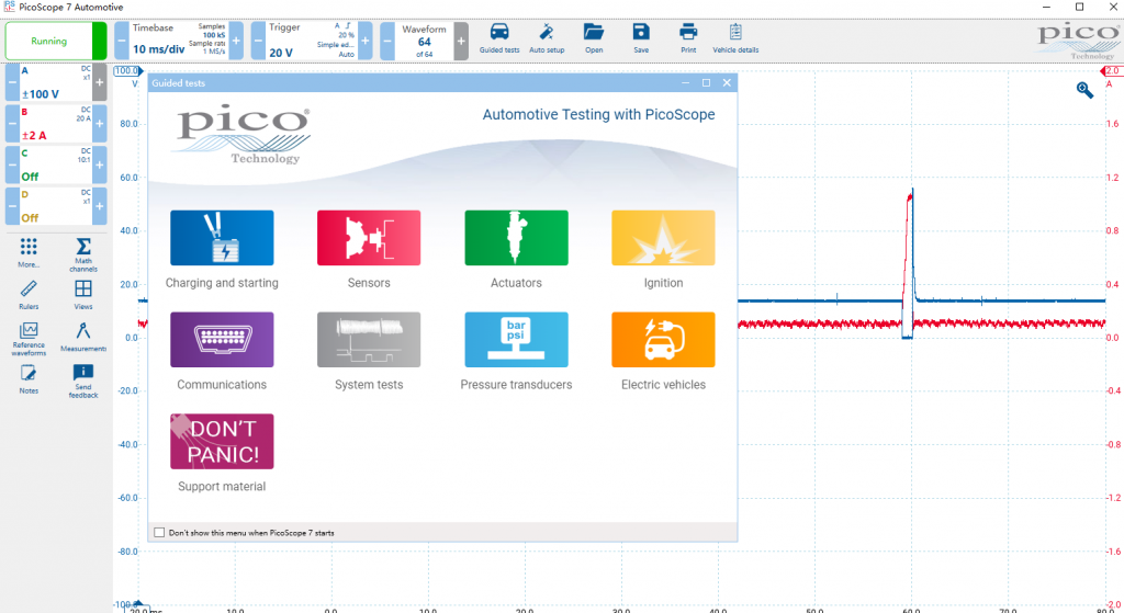 為了支持Pico4425A新能源車(chē)診斷套裝,我們已經(jīng)在PicoScope 7汽車(chē)軟件里新增加了一系列的引導(dǎo)測(cè)試。其中一些測(cè)試?yán)玫墓δ躊icoScope 6汽車(chē)軟件是沒(méi)有的。當(dāng)然接下來(lái)的幾個(gè)月里,我們會(huì)增加更多這些引導(dǎo)測(cè)試范圍。
