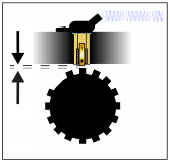 感應(yīng)式CKP由兩個重要的元件組成,一個線圈纏繞在一個永久磁體周圍,永久磁體會自然地在線圈周圍產(chǎn)生一個磁場。在磁場引入一個金屬物體(以信號輪的形式)磁場強度會發(fā)生變化,增強或減弱取決于信號輪運轉(zhuǎn)的速度和方向。