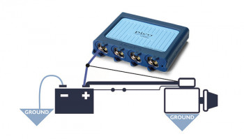 浮地輸入允許用一個通道來進(jìn)行電壓降測試(例如跨接在蓄電池到起動機(jī)電纜上)和測量沒有接地的信號(如混合動力電動汽車的驅(qū)動)。浮地輸入的任何兩個通道的接地電壓差最大達(dá)30V。