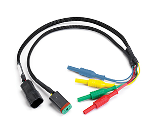 該連接器引線助你讀取發(fā)動(dòng)機(jī)的各種傳感器、執(zhí)行器的電壓信號(hào)。輕松連接引線到發(fā)動(dòng)機(jī)線束上,然后將汽車示波器BNC測(cè)試線(HKTA125至HKTA128其中一條)連接到引線的4mm香蕉接頭上讀取信號(hào)。你可以用電流鉗測(cè)試引線的每一條線的電流;例如:使用引線同時(shí)采集噴油嘴電流和噴油嘴電壓。
