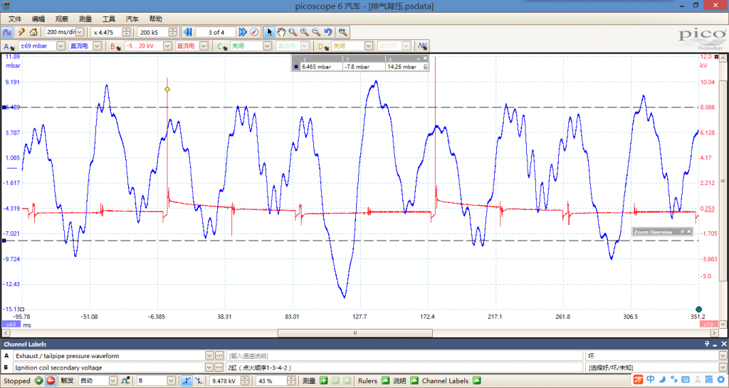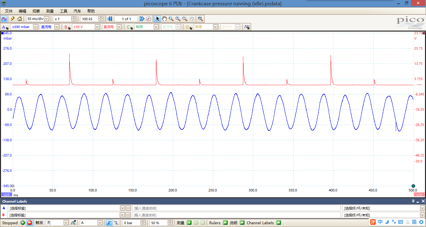用第三個(gè)量程,你可測(cè)量-5至5psi (大約 -0.34 至 0.34 bar)的壓力。該設(shè)置有足夠的靈敏度,你可以分析小壓力或脈沖例如排氣脈沖。